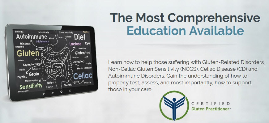 The Certified Gluten Practitioner Program is the most comprehensive practitioner education available for Non-Celiac Gluten Sensitivity (NCGS), Celiac Disease (CD) and Autoimmune Disorders. This course provides research based education, the facts about celiac and non-celiac gluten sensitivity and related autoimmune disorders, as well as clinically proven approaches to help you support your patients. This course is for healthcare practitioners who want a more comprehensive understanding of gluten and its related disorders. Whatever your level of education on the subject, you will find value in this course. www.CertifiedGlutenPractitioner.com