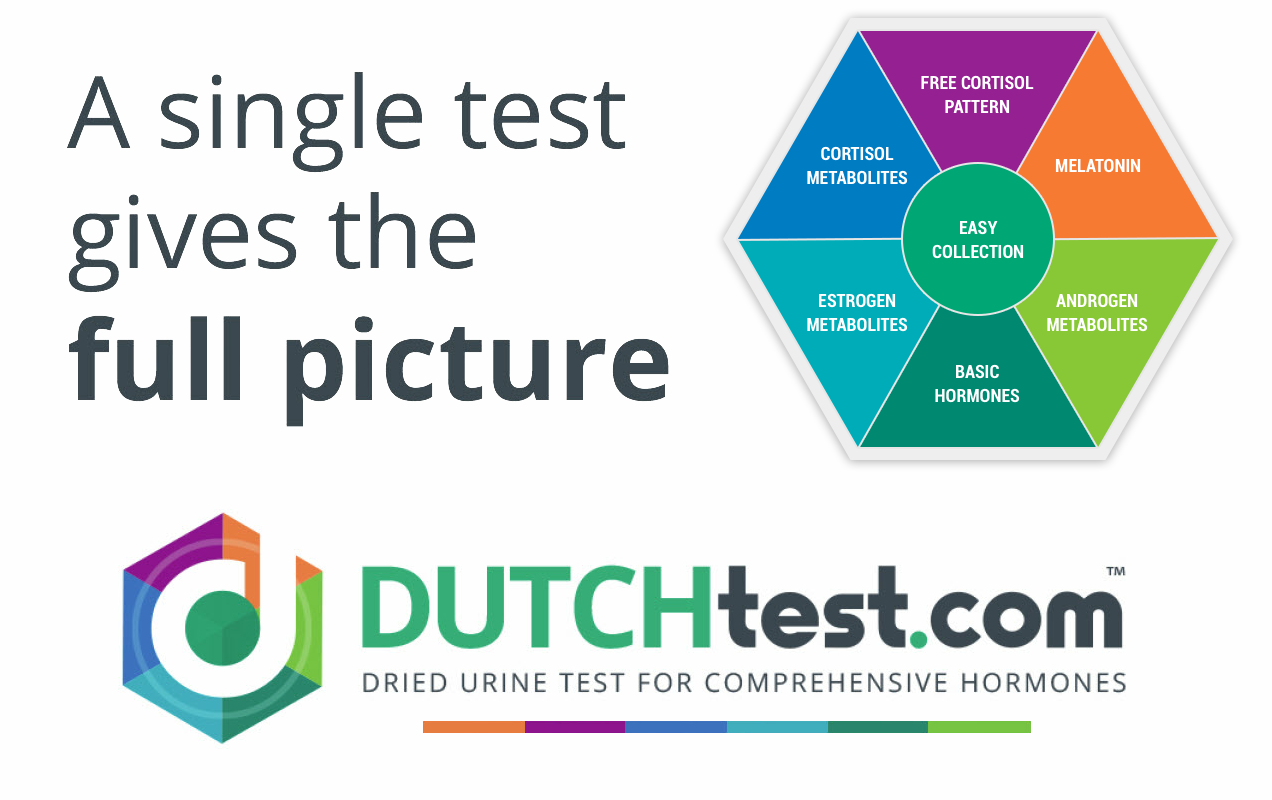 Dried Urine Test for Comprehensive Hormones (DUTCH) Complete: The most advanced hormone test, offering an extensive profile of sex and adrenal hormones, along with their metabolites, to identify symptoms of hormonal imbalances. Easily collected in the comfort of the patient’s own home, tests are sent to our lab to be processed in order to provide a detailed analysis. The DUTCH Complete is the most accurate test, providing a complete assessment of hormonal health.